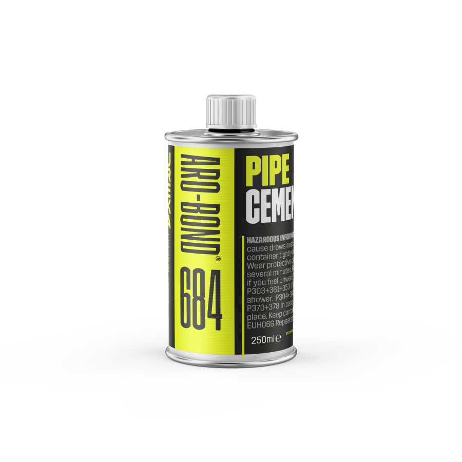 Aro-Bond 684 PVC Pipe Cement is a non-drip, high-strength thixotropic gel with a long open time, ideal for welding and bonding ABS and UPVC plastics.