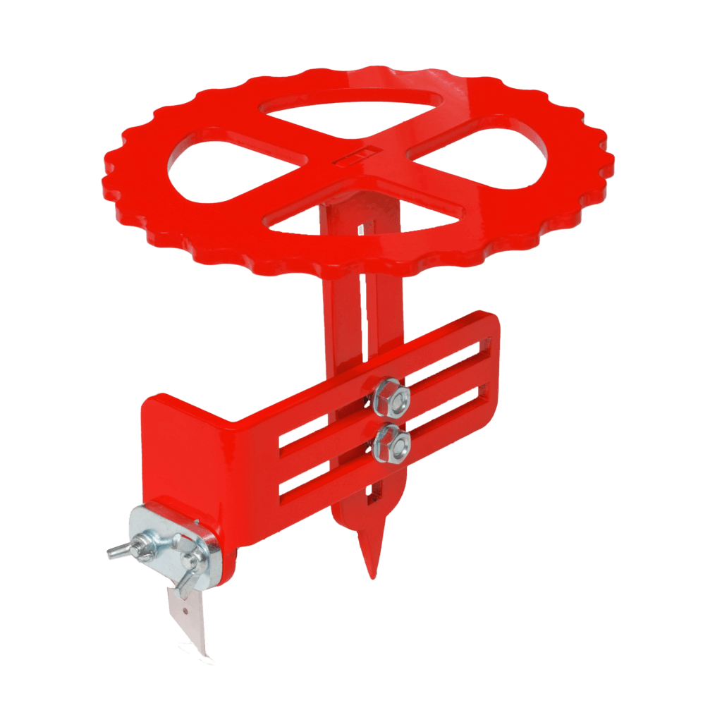This tool is designed to make precise circular cuts in artificial turf. Its sharp replaceable blade and adjustable radius allow for clean and consistent cuts of various sizes.