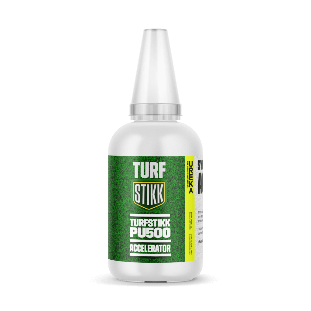 Turfstikk PU500 Accelerator is a catalyst designed to accelerate the curing of Turfstikk PU500 two-component polyurethane adhesive when used in lower temperature environments.